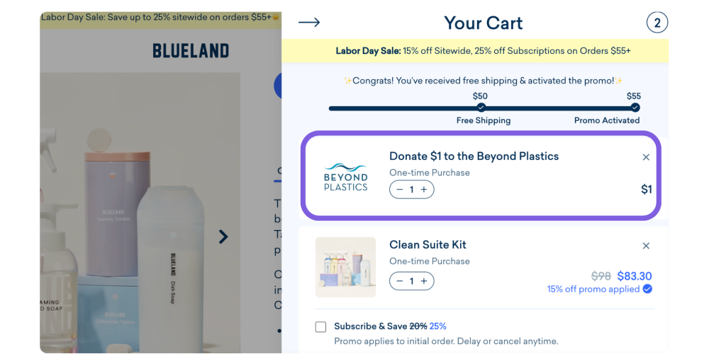 Blueland Raises $300k+ for Nonprofits with Pledge's Checkout Donation Feature